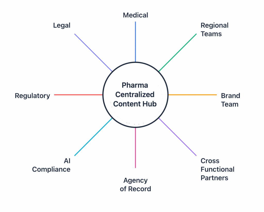 Form a cross-functional governance group (Medical, Legal, Regulatory, Brand, AI Compliance) to own SOP development. This will help ensure that content collaborators trust each other in their professional capacity and in their professional judgment. Define clear roles, approval authority, escalation paths, and accountability mechanisms. Anchor all activity to a centralized content hub that serves as the single source of truth.